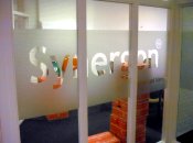 Glass-etch folie met een zandstraaleffekt, waarin,